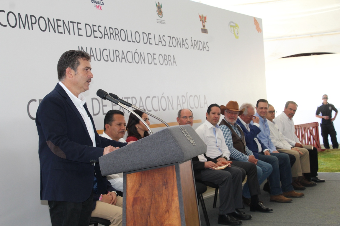 En el marco de la Asamblea General Ordinaria Anual de la Unión Ganadera Regional de Querétaro (UGRQ), el gobernador del estado Francisco Domínguez Servién encabezó la ceremonia de inauguración del Centro de Extracción Apícola, con el cual se impulsa y fortalece la producción de los apicultores en el estado, mismo que tendrá capacidad para llevar a cabo la extracción de 120 toneladas de miel al año.