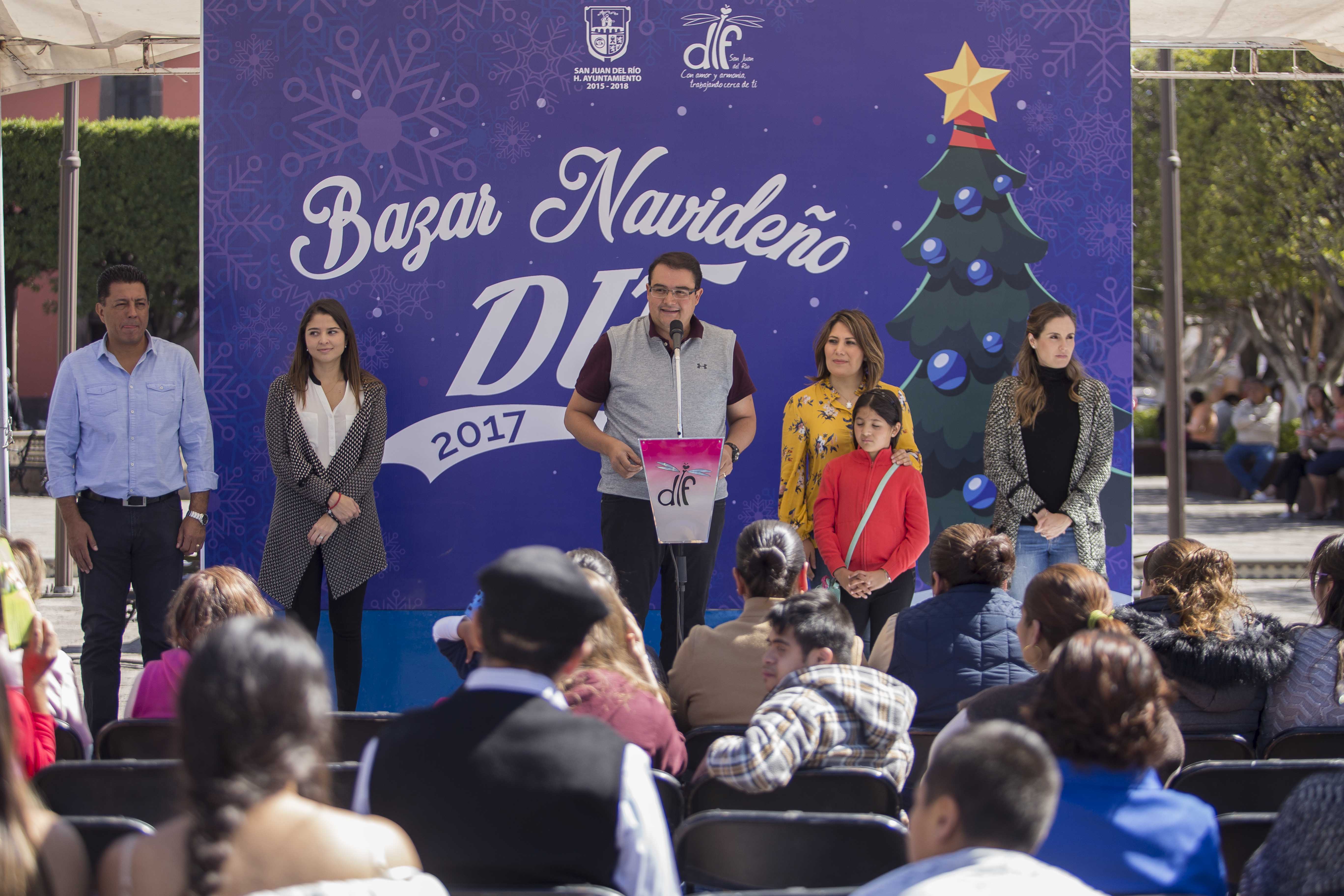 El Presidente Municipal de San Juan del Río, Guillermo Vega Guerrero inauguró el Bazar Navideño DIF 2017, en el Jardín de la Familia, durante el evento estuvo acompañado por su esposa Male Ruiz y su hija María José.