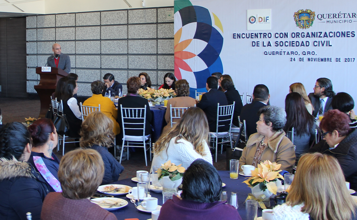El presidente municipal de Querétaro, Marcos Aguilar Vega, encabezó la reunión con 110 organizaciones de la sociedad civil, en el evento se entregó apoyo económico y en especie a estas instituciones.