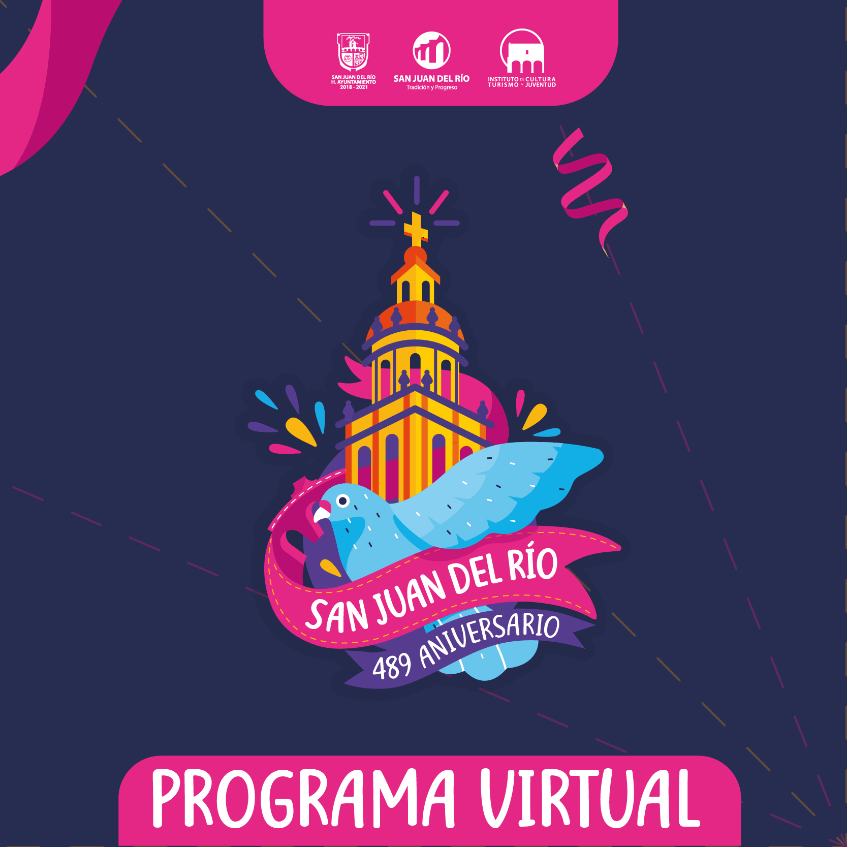 El Gobierno Municipal que encabeza el Alcalde Memo Vega, preparó un programa virtual de actividades para celebrar el 489 Aniversario de la fundación de San Juan del Río, el cual se llevará a cabo del 19 al 24 de junio, incluyendo las tradicionales mañanitas, la sesión solemne de Cabildo, en la que se hará la cancelación del sello postal y la entrega de reconocimientos a sanjuanenses destacados, así como diversas actividades artísticas y de entretenimiento para las familias que en este momento se encuentran en casa debido a la pandemia mundial por el COVID 19.